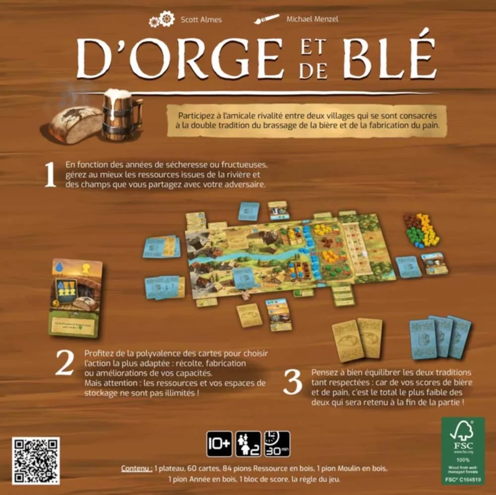 D’Orge et de Blé est un jeu de cartes pour deux joueurs. Sa mécanique astucieuse de tours alternés apporte une touche fascinante à l’interaction des joueurs, au tirage des cartes et à la gestion des ressources.
