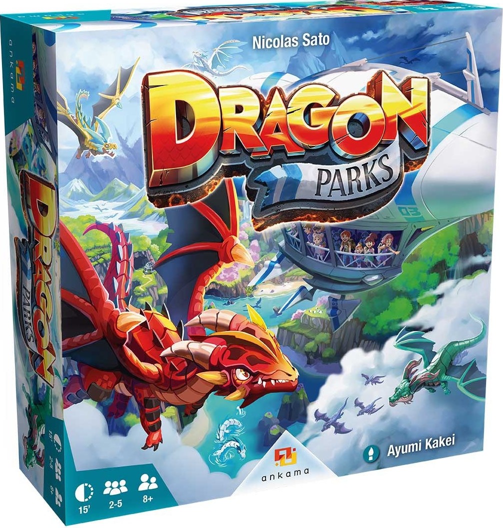 Dragon Parks est un jeu de « draft » qui utilise des cartes transparentes. Sélectionnez une nouvelle carte à chaque tour pour la poser sur l’une de vos trois îles, en ajoutant ou en recouvrant les dragons de ce parc comme vous le faites. Certains dragons détestent être couverts par d’autres et se vengeront, et si vous parvenez à faire éclore un œuf en le couvrant, il attirera de nouveaux visiteurs !