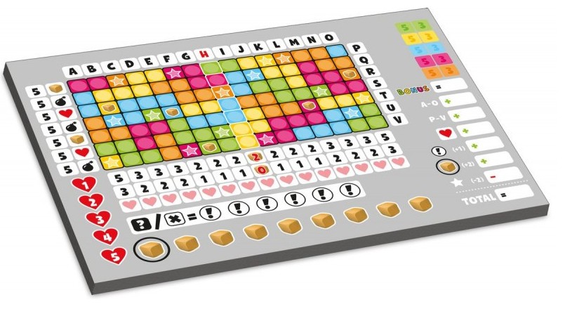 Utilisez les bombes pour commencer à cocher n’importe où. Collectionnez les cœurs et vous encaisserez des points supplémentaires pour les colonnes complétées. Mais n’oubliez pas de compléter aussi les rangées ; en effet, désormais à la fois les rangées et les colonnes rapportent des points importants.