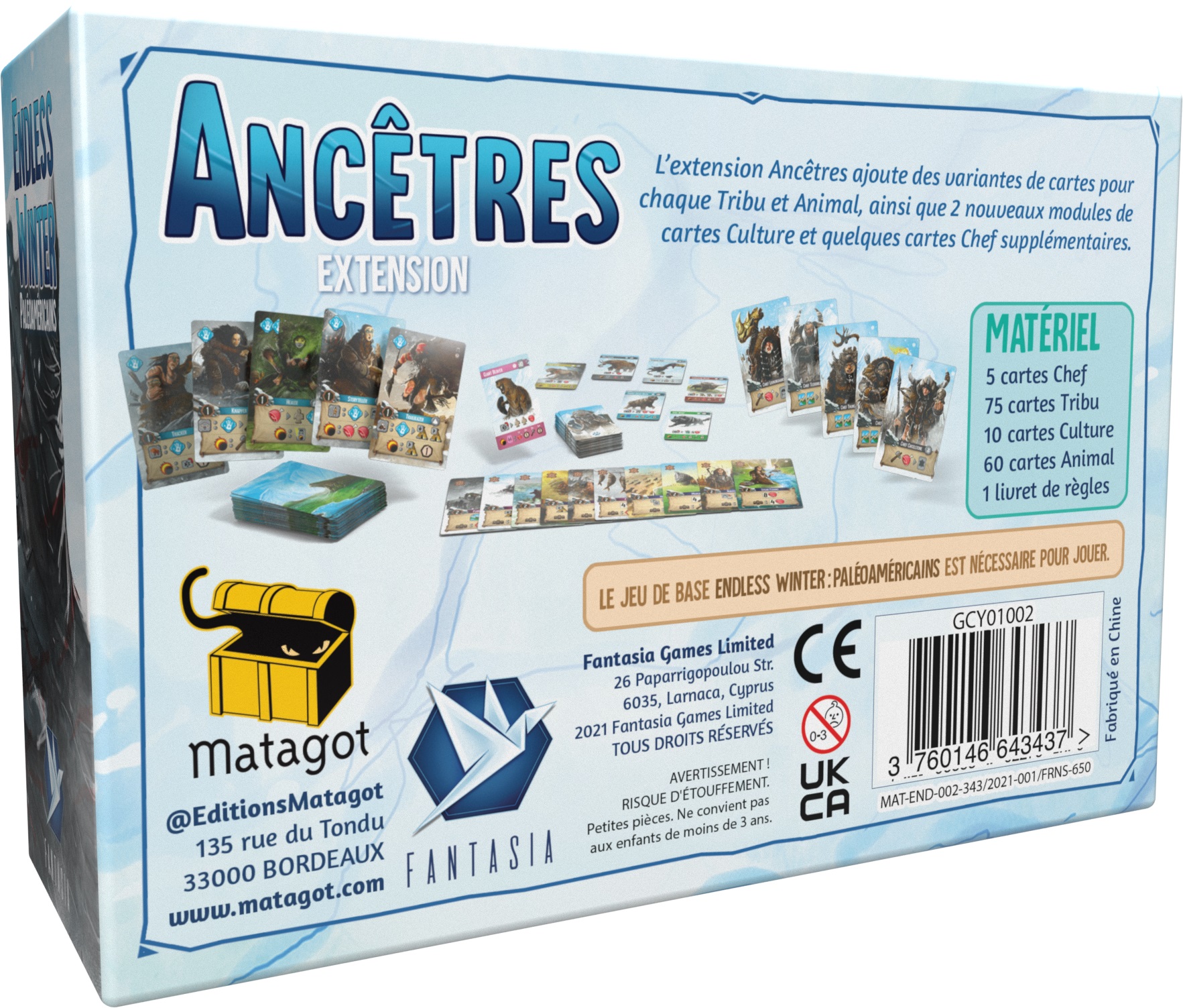 L’extension Ancêtres ajoute des variantes de cartes pour chaque tribu et animal, ainsi que 2 nouveaux modules de cartes culture et quelques cartes chef supplémentaires.