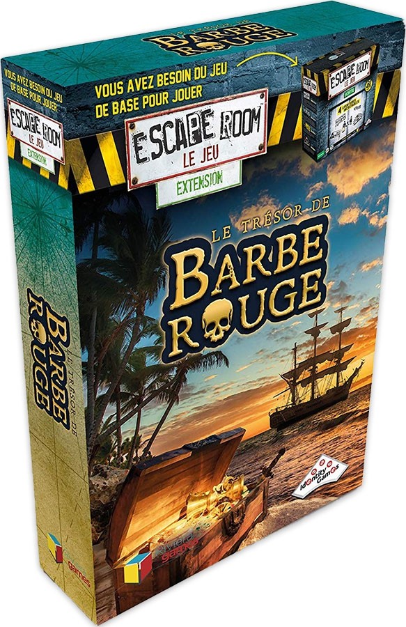 *Le Trésor de Barbe Rouge est une extension du jeu Escape Room – Le Jeu, il vous faudra le jeu de base pour y jouer car Décodeur d’indices, le Chrono et les clefs sont essentiel à l’expérience.