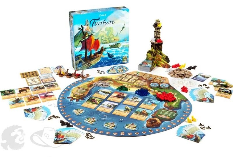 Bienvenue à Everdell Farshore, un jeu indépendant situé dans le pays de Farshore. À travers chaque saison, vous dirigez une équipe d’ouvriers pour construire une ville prospère et pour explorer l’océan enchanteur. Vous devez planifier soigneusement vos actions pour construire et naviguer, car seul l’adaptation vous permettra de réussir.