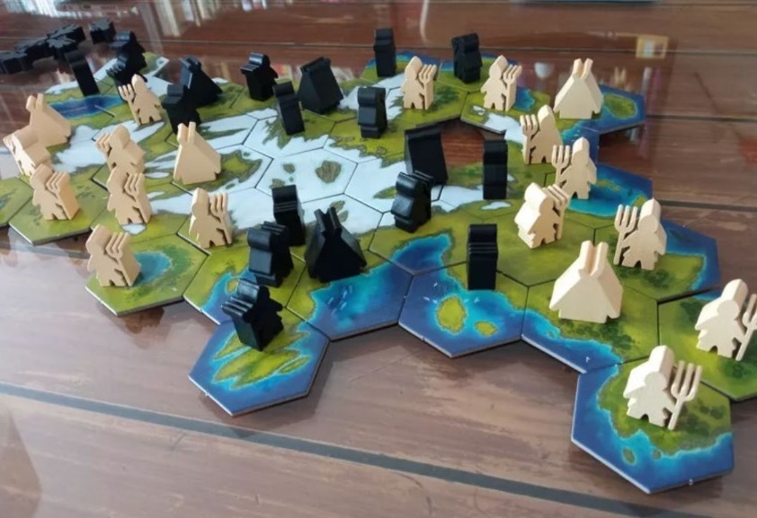 Composez la carte lors de la première phase de jeu. Chaque tuile viendra créer un paysage unique à chaque partie qui se retrouvera très vite ponctuée de Longhouses vikings, nécessaire à l’extension de votre territoire. La deuxième phase de jeu invite les joueurs à propager leurs vikings à partir des bâtisses posées précédemment. Les runes secrètes peuvent alors intervenir et modifier placements et points. Chaque tuile rapporte des points et le joueur qui en a le plus une fois le placement des vikings terminé remporte la partie !