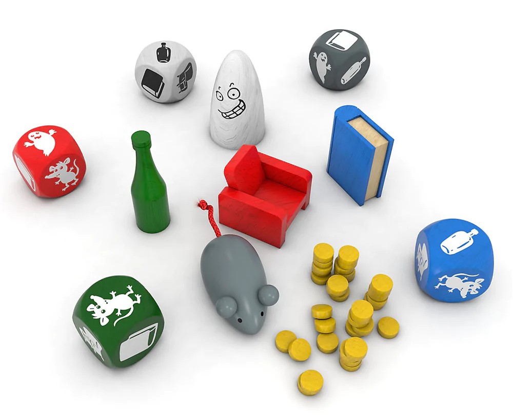Le jeu de reconnaissance de formes et de couleurs ultra-rapide qui ne manquera pas de tester les réflexes des enfants, des familles et des joueurs. Dans Ghost Blitz , cinq objets en bois attendent d’être attrapés sur la table : un fantôme blanc, une bouteille verte, une jolie souris grise, un livre bleu et une confortable chaise rouge. Chaque carte du jeu montre des images de deux objets, avec un ou les deux objets colorés dans le mauvais sens. Alors que tous les joueurs jouent en même temps, quelqu’un révèle une carte, puis les joueurs attrapent le « bon » objet – mais quel objet est le bon ?