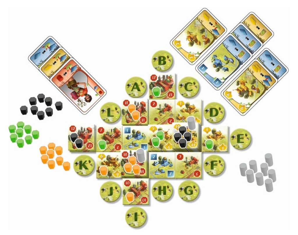 À chaque tour, les joueurs choisissent simultanément une action en sélectionnant une carte de leur main. Une carte jouée seule permet d’exploiter un bâtiment de la ville tandis qu’une carte jouée avec une tuile Bâtiment permet d’y construire un nouveau bâtiment.