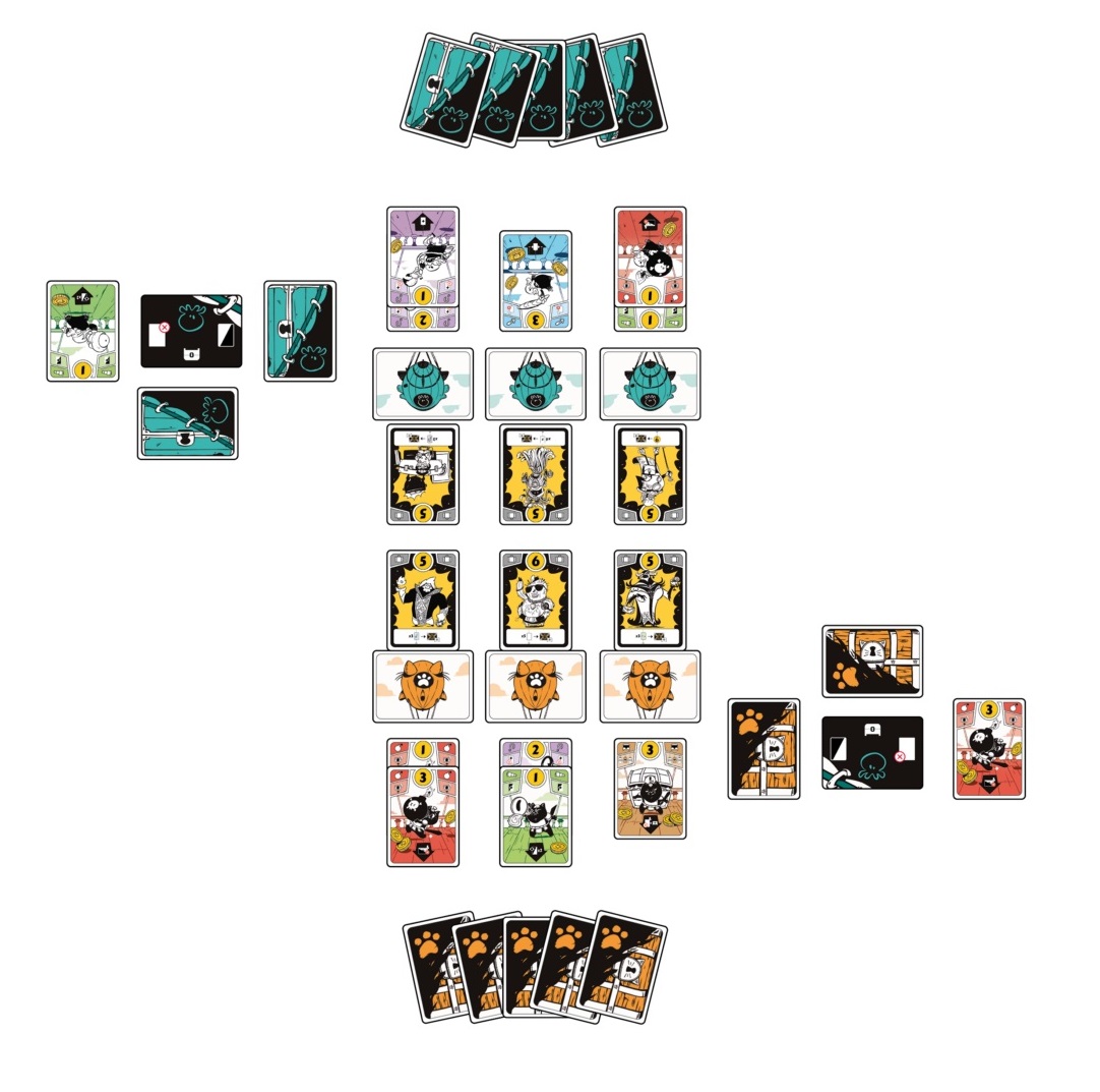 Les Octopirates contre les Meowmurais. Pour l’occasion, les invités de marque ont payé jusqu’à leur nez pour avoir une place à bord de ces vaisseaux d’exception. Mais dès que la course commence, c’est la guerre ! Choisissez un équipage Deck : Octopirates ou Meowmurais.A votre tour, vous pouvez effectuer 2 actions parmi :jouer une carte dans une de vos colonnes (il n’est pas permis de jouer une carte dans la colonne qui a le plus de cartes) et appliquer son effet de jeu, défausser une carte d’une de vos colonnes et appliquer son effet de défausse, tirer une carte.