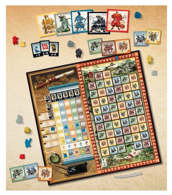 Dans Gunkimono (mot japonais signifiant “contes guerriers”), les joueurs incarnent ces daimyos. Pour chaque tuile domino que vous posez, décidez si vous souhaitez gagner immédiatement des points de victoires en créant des formations d’unités ou si vous les utilisez pour gagner des points d’honneur, construire à long terme vos forteresses et gagner les barrières de guerre.