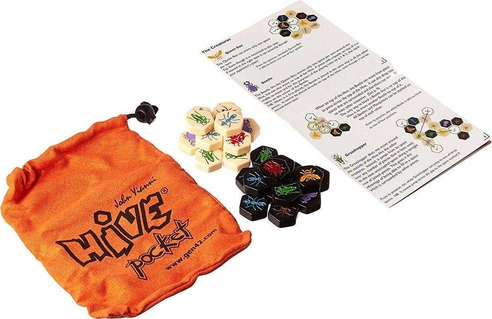 Hive pocket est le même jeu merveilleux que nous aimons tous, mais dans une version compacte. Avec toutes ses pièces dans un petit sac en tissu portable, ce jeu peut fournir du plaisir à peu près partout!