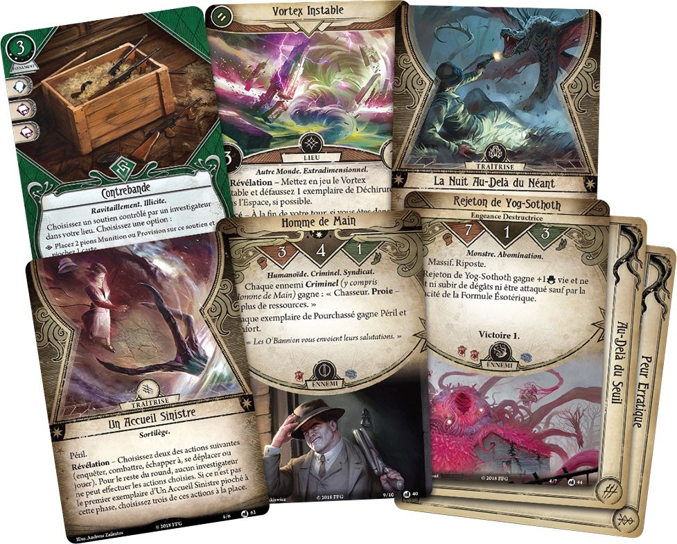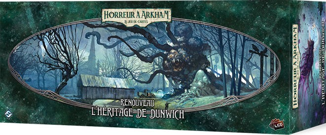 Dans Horreur à Arkham JCE: Renouveau – L’Héritage de Dunwich, les investigateurs partent à la recherche des professeurs disparus, initiant une campagne qui les mènera au fameux Club du Trèfle, au sein de l’Université Miskatonic et bien au-delà. Cette extension contient les deux premiers scénarios de la campagne L’Héritage de Dunwich, ainsi que de nouveaux investigateurs et de nouvelles cartes Joueur pour personnaliser davantage le jeu. Horreur à Arkham : le jeu de cartes est un jeu coopératif dans lequel les joueurs incarnent des investigateurs qui tentent d’élucider de terrifiants mystères surnaturels.