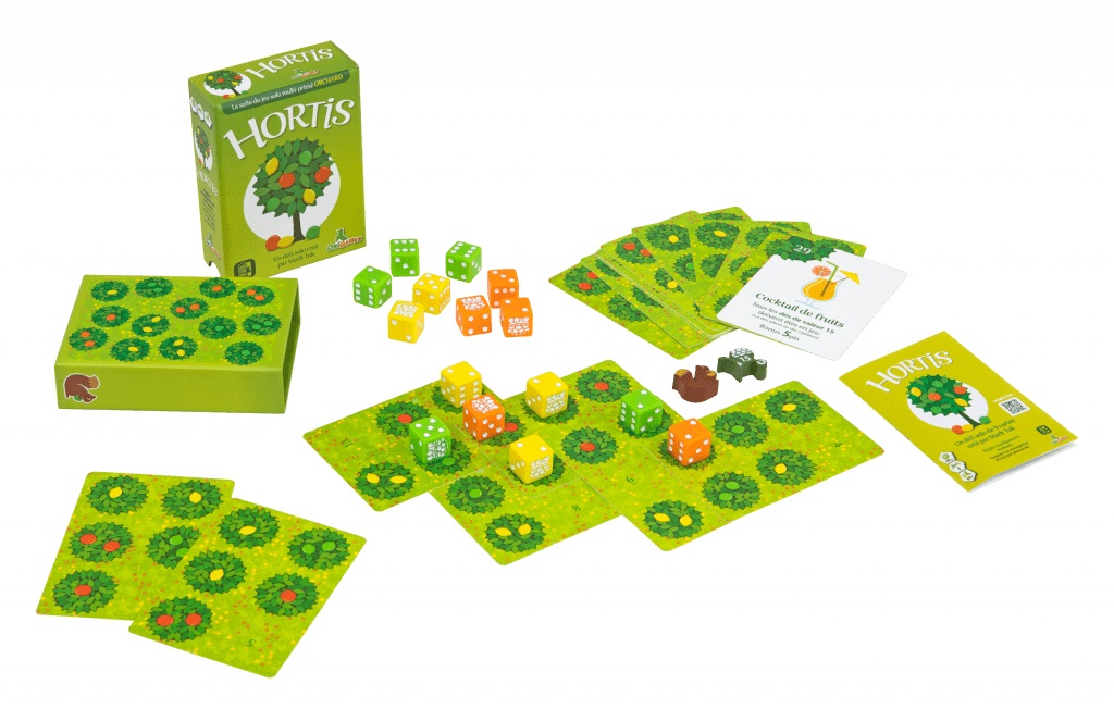 Agrandissez votre verger et récoltez un maximum de fruits ! Choisissez et agencez astucieusement vos cartes pour superposer les mêmes types d’arbres afin d’augmenter votre récolte. Méfiez-vous de l’Écureuil malicieux, qui peut à la fois vous aider et vous nuire ! N’oubliez pas de vous munir de votre Brouette, afin de récolter toujours plus de fruits ! Sur le verso des cartes figurent les Recettes : des défis et des objectifs, pour encore plus de rejouabilité !