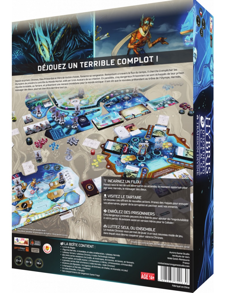 DÉJOUEZ UN TERRIBLE COMPLOT! Depuis sa prison, Chronos, Dieu Primordial et Père de toutes choses, fomente sa vengeance. Remontant à travers le flux du temps, il cherche à empêcher les Olympiens de prendre le contrôle du Monde Mortel, aidé par trois Avatars de sa création. En parallèle, cinq dangereux Prisonniers se sont échappés de leur prison réputée inviolable, au Tartare, et présentent une menace immédiate pour le monde Antique ! Il est dit que le nouveau prétendant au trône de l’Olympe, Hermès, messager des dieux, pourrait bien être derrière tout ça…