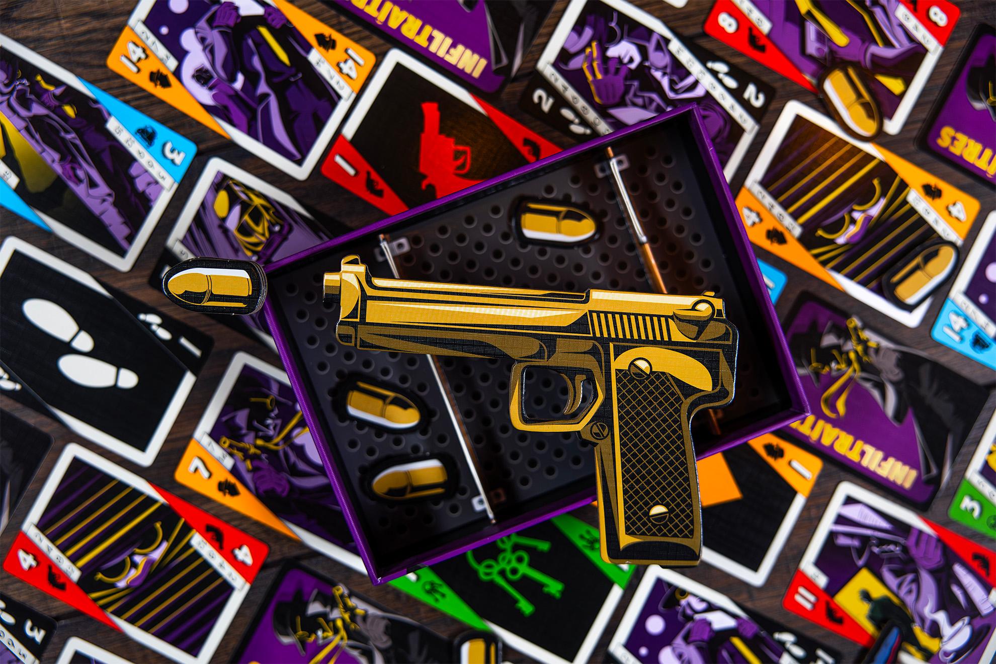 Chaque agent connaît l’identité d’un traître. Pour éliminer les traîtres de chaque agent, jouez des cartes devant vous ou devant les autres pour échanger des informations. Déduisez ainsi collectivement l’identité secrète des traîtres désignée par un chiffre et une couleur. Pensez à économiser les ressources communes (pioche et munitions) sinon c’est la défaite ! Communication et logique seront vos armes pour relever tous les défis de ce jeu de déduction coopératif.