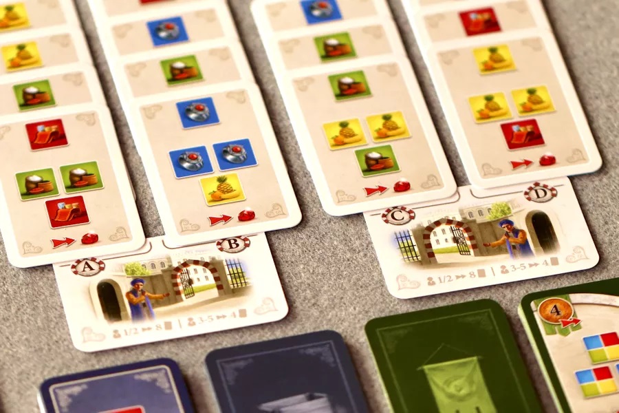 À leur tour, les joueurs doivent choisir de jouer une carte Lieu ou une carte Guilde. Les cartes Lieu permettent à tous les marchands d’effectuer l’action du lieu spécifié, ou l’action d’une case adjacente sur leur feuille. Si un joueur préfère empêcher les autres d’effectuer cette action, il peut jouer une carte Guilde, qui est coûteuse mais déclenche de puissants effets.