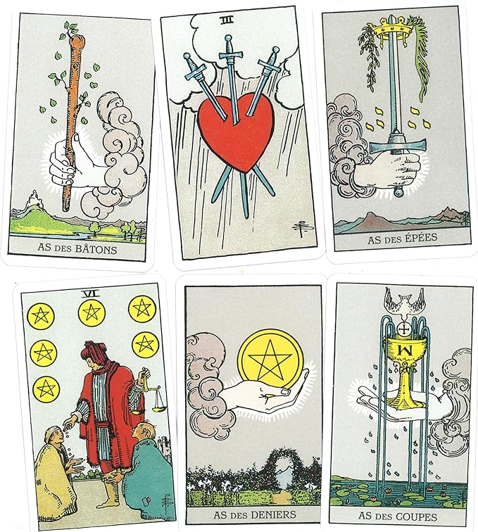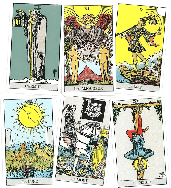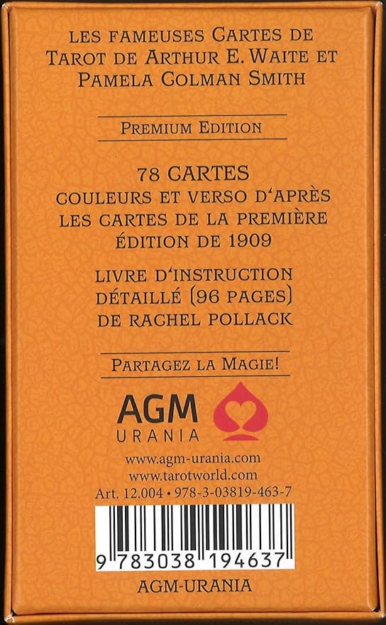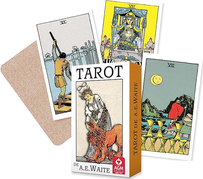 La structure du Tarot d’A.E. Waite est la même que celle du Tarot de Marseille mais ses cartes mineures figuratives le rendent plus intuitif et facile d’accès. Le tarot le plus vendu au monde.