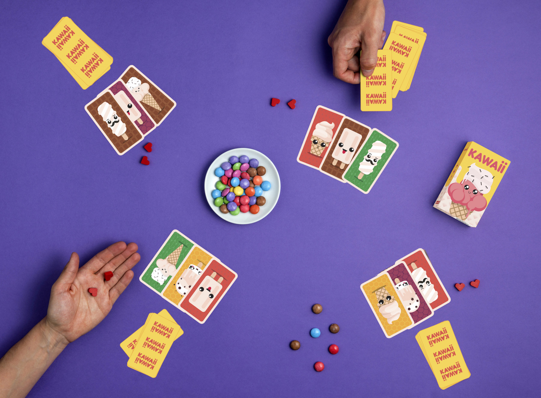 Dans Kawaii, vous devez récolter le maximum de glaces de votre forme et de votre parfum préférés. Posez vos cartes, observez les piles de vos voisins et soyez le plus rapide pour obtenir celles qui vous intéressent. Si les cerises vous rapportent des points bonus, prenez garde à ne pas trouver porte close en allant chez le glacier, au risque de voir vos points fondre au soleil…