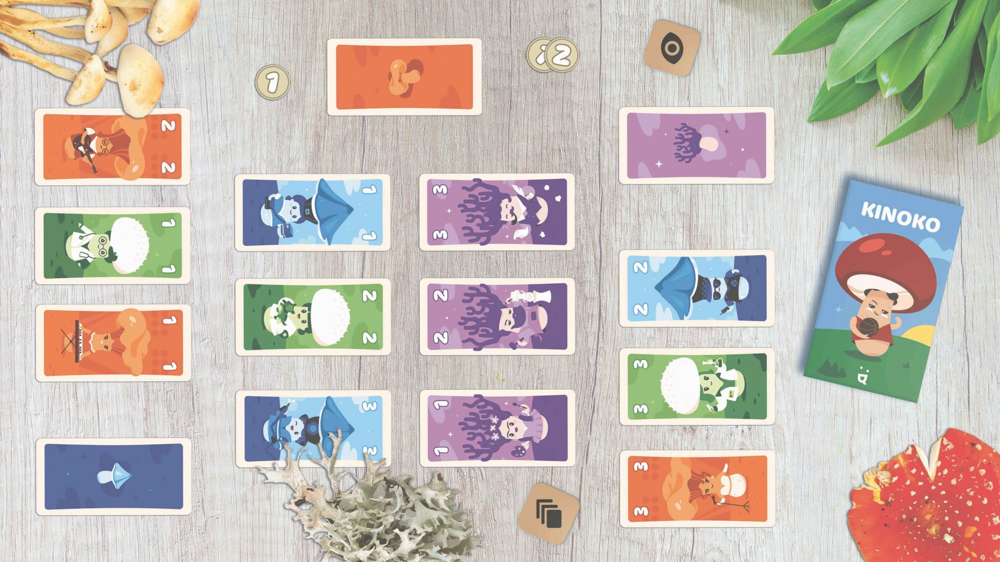 Dans Kinoko, rassemblez les trois champignons de votre couleur au même endroit. Facile ? Pas tant que ça lorsque vous voyez les cartes de vos adversaires, mais pas les vôtres !