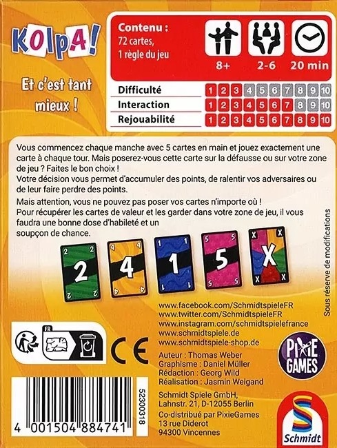 Comme dans le jeu populaire du Mau Mau, les joueurs posent les cartes correspondantes sur la pile de défausse au milieu de la table. Mais KOLPA! ne consiste pas seulement à se débarrasser de ses cartes le plus rapidement possible.