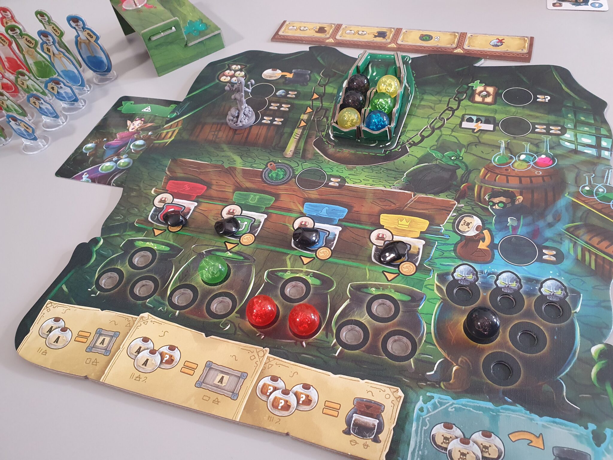 Chaque joueur utilise son propre ensemble de composants (matériel et plateau) et de mécanismes de jeu spécifiques à son rôle pour produire ses marchandises, augmenter l’efficacité de sa boutique, faire évoluer son équipe et, surtout, devenir riche !