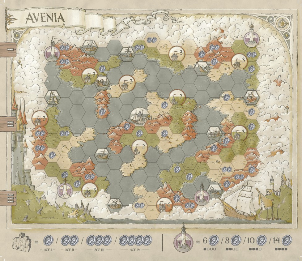 En effet, bien que le royaume prospère, ses cartes ne sont plus à jour et les grandes villes n’ont plus de contact entre elles. Avec votre équipe d’Explorateurs, vous devrez donc voyager à travers des Mers agitées, des Montagnes majestueuses, de vastes Déserts et des Prairies luxuriantes dans le but d’établir des Routes Commerciales entre les Villes, de visiter des Tours d’Observation imposantes et de découvrir des Villages nouvellement bâtis.