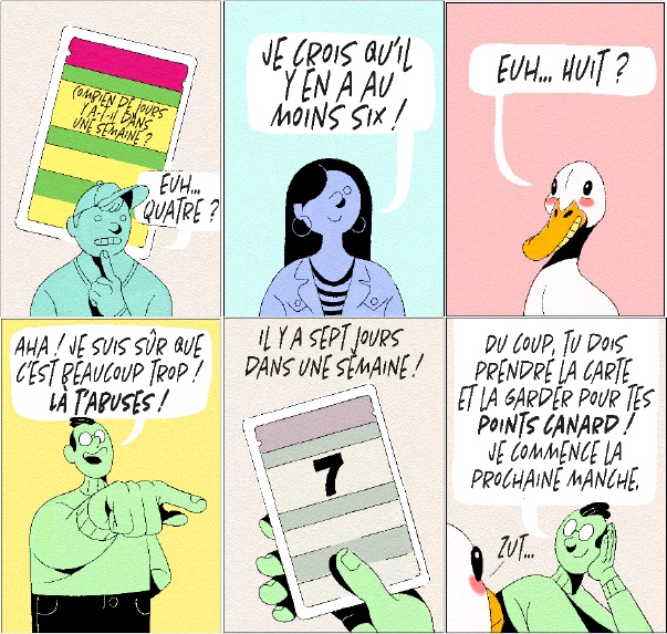 Le jeu ne nécessite pratiquement pas d’espace sur la table et peut donc être utilisé comme jeu de fête dans presque tous les contextes.