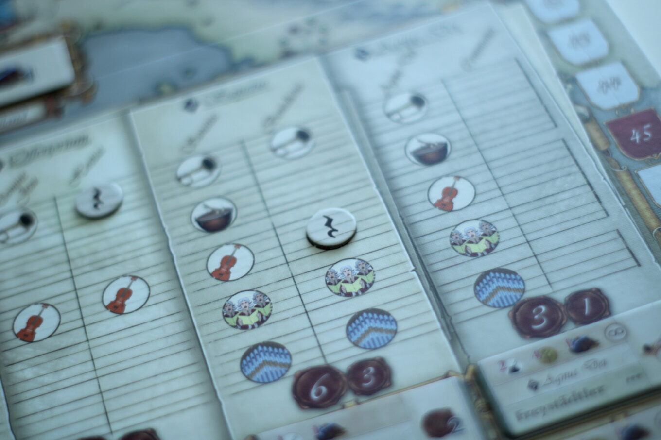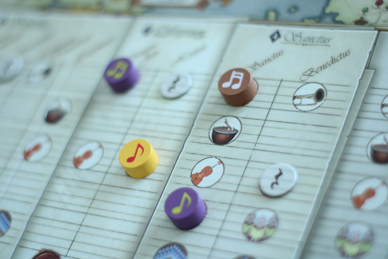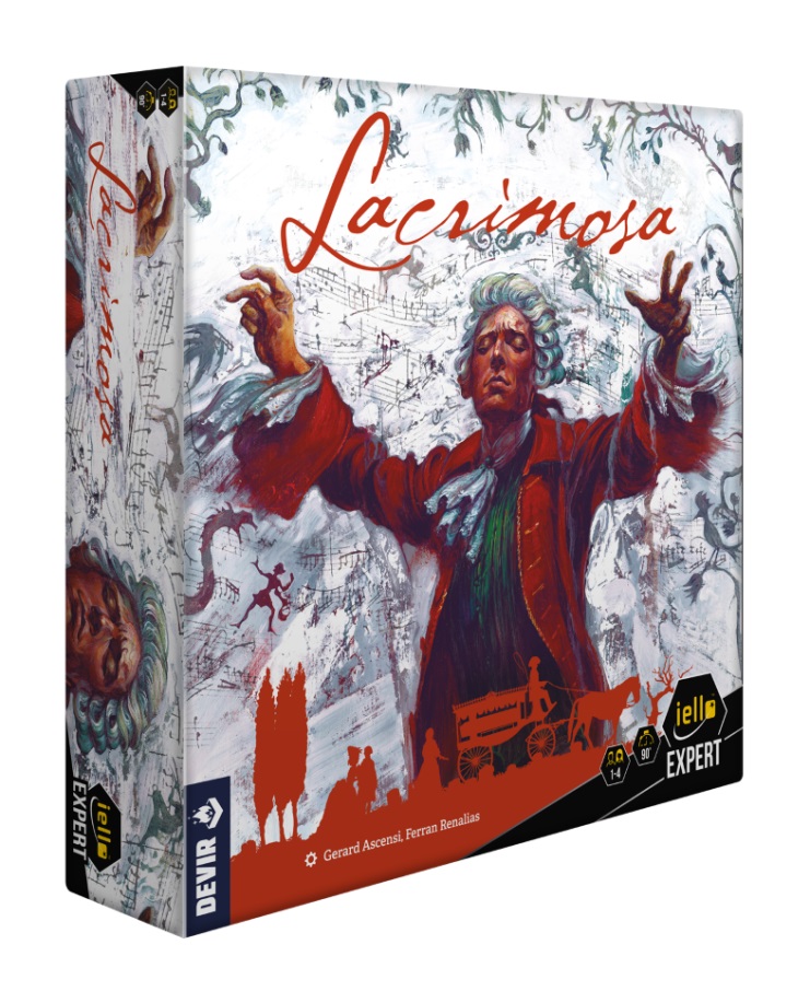 Lacrimosa est un eurogame pour joueurs experts dans lequel les joueurs jouent le rôle de mécènes du défunt musicien, contribuant avec leurs fonds pour achever la dernière œuvre du compositeur.
