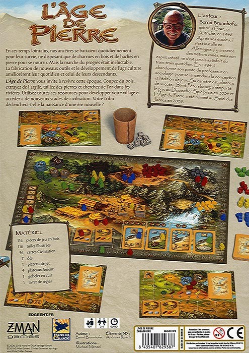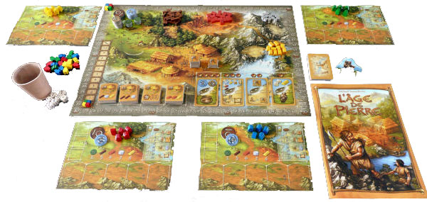 L’Âge de Pierre lance les joueurs dans cette époque rude et sans pitié. À l’aide d’outils, au départ rudimentaires, vous pourrez récolter bois, pierre et or. Ces ressources vous seront très utiles dans vos négociations avec les villages voisins. Bien que la chance sera maître d’une partie de votre périple, une bonne planification vous permettra de prendre le dessus sur toutes circonstances hasardeuses. Et surtout, n’oubliez pas de nourrir votre peuple à chaque tour. Vous devrez vous dépasser et vous débrouiller, tout comme vos ancêtres, afin d’atteindre la victoire !