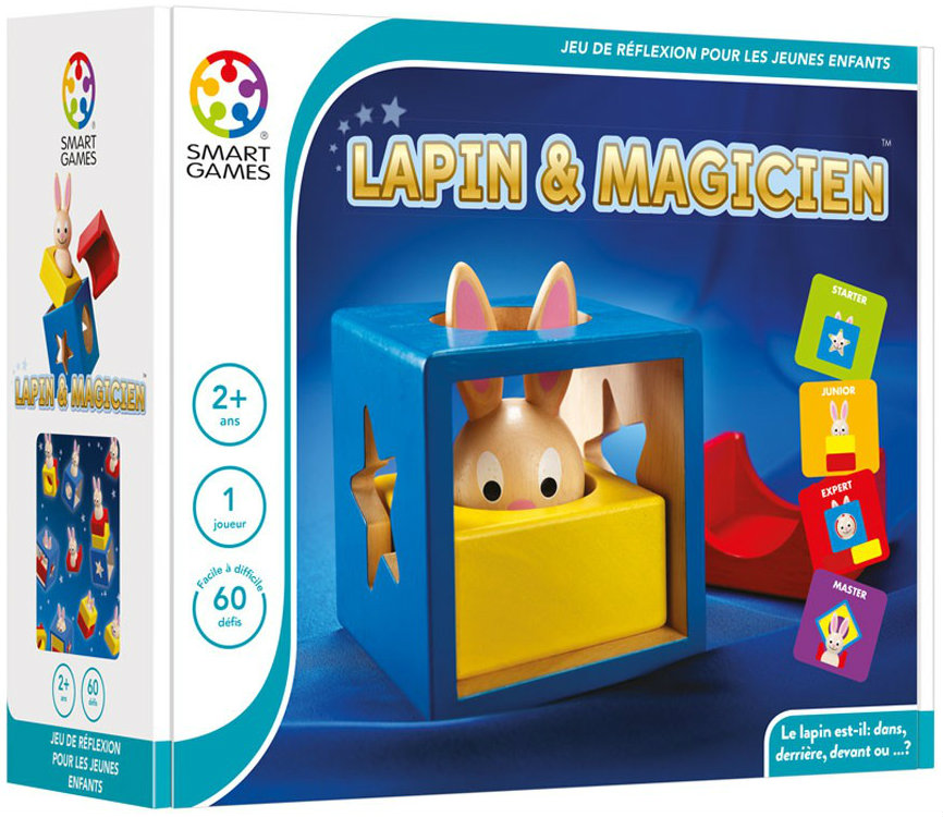 Assis sur le bloc jaune, rouge ou bleu? Regarde-t-il à travers le trou rond ou bien l’étoile? Lapin & Magicien est un jeu destiné aux jeunes enfants afin de leur permettre de découvrir le monde fascinant de la 3D.