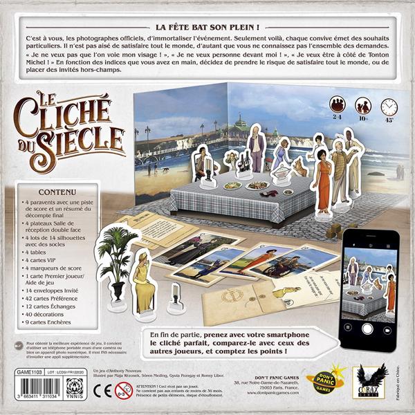 En fonction des indices que vous avez en main, décidez de prendre le risque de satisfaire tout le monde, ou de placer des invités hors-champs. En fin de partie, prenez avec votre smartphone le cliché parfait, comparez-le avec ceux des autres joueurs, et comptez les points !