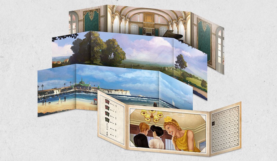 Contenu: 4 paravents avec une piste de score et un résumé du décompte final, 4 plateaux Salle de réception double face, 4 lots de 14 silhouettes avec des socles, 4 tables, 4 cartes VIP, 4 marqueurs de score, 1 carte Premier joueur/Aide de jeu, 14 enveloppes Invité, 42 cartes Préférence, 12 cartes Échanges, 40 décorations, 9 cartes Enchères.