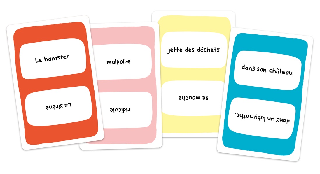 Simultanément, les joueurs.euses doivent utiliser leurs 4 cartes pour créer une histoire en choisissant une des deux options sur chacune des cartes. Chaque joueur.euse illustre son histoire sous forme de bande dessinée. Pas de pression: les dessins peuvent être aussi nuls que l’histoire. Quand tout le monde a terminé, chaque joueur.euse montre sa bande dessinée créée d’après les cartes pigées.