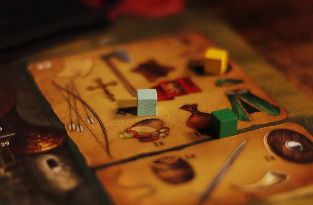 Contenu: 1 grand plateau, 1 livre d’aventures relié, 26 pions en bois, 130 cubes en bois, 10 disques en bois