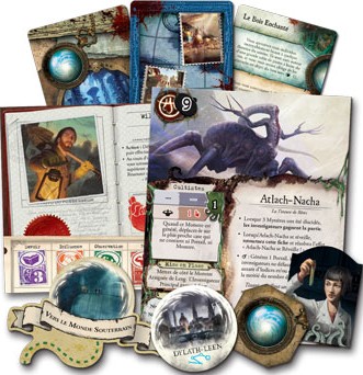 1 Plateau, 1 Livret de Règles, 8 fiches d’Investigateur, 2 fiches Grand Ancien, 24 cartes Mythe, 32 cartes Rencontre Lieu, 48 cartes Rencontre Recherche, 6 cartes Rencontre Autre Monde, 20 cartes Rencontre Quête Onirique, 24 cartes Rencontre Spéciale, 12 cartes Mystère, 8 cartes Aventure, 6 cartes Prélude, 4 cartes Artefact, 16 cartes Ressource, 19 cartes Condition, 12 cartes Sort, 25 cartes Ressource Unique, 4 cartes Résumé du Tour de Jeu, 11 pions Monstre, 7 pions Indice, 12 pions Concentration, 3 pions Portail, 1 pion Aventure, 3 pions Arche Onirique, 1 pion Quête Onirique, 4 pions Vie et Santé Mentale, 8 pions Investigateur et 8 Supports en Plastique.