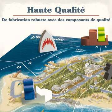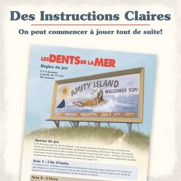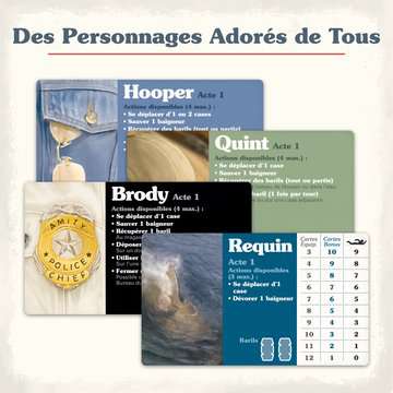Revivez toute la tension des Dents de la mer dans ce jeu de stratégie asymétrique ! Un joueur endosse le rôle du grand requin blanc qui menace l’île d’Amity, tandis que les autres incarneront Brody, Hooper et Quint, et se lanceront ensemble dans une chasse effrénée pour tenter de l’arrêter. Un scénario en deux actes, fidèle à ce grand classique du cinéma, qui va vous clouer à votre siège.