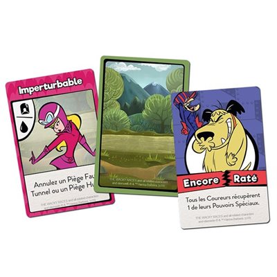 Contenu: 11 figurines de Coureur, 10 Tableaux de Bord, 40 cartes Pouvoir Spécial, 64 cartes Déplacement, 16 cartes Piège, 1 carte Activation des Coureurs Neutres, 1 Grille de Départ, 16 tuiles Terrain, 4 tuiles Spéciales, 2 tuiles Point-relai, 1 livret de règles, 1 feuillet de Championnat.