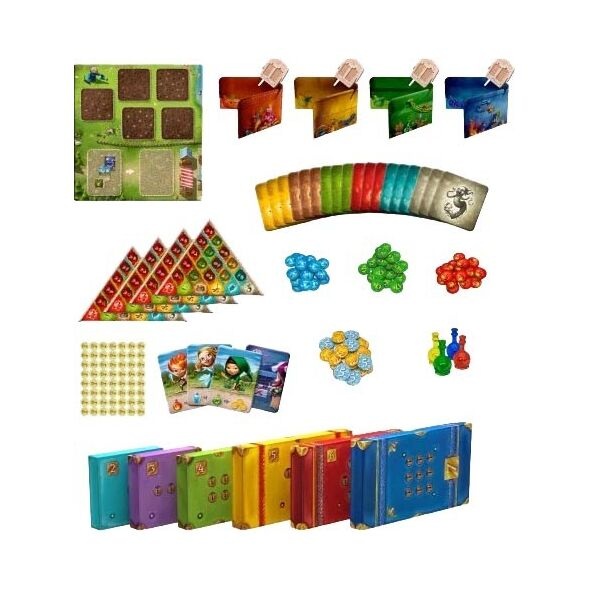 Les Petits Alchimistes est un jeu de déduction familial conçu pour évoluer avec l’esprit curieux des jeunes joueurs. Le jeu commence par des concepts et des mécanismes simples ; vous commencerez par rassembler et combiner des ingrédients pour préparer des potions à vendre.