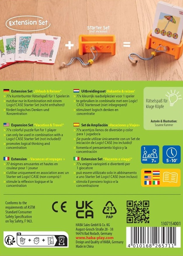 NOUVEAU Logique ! CASE Extension Sets !Faites découvrir à votre enfant le prochain niveau de plaisir éducatif avec le Logic ! CASE Extension Set – Vacances et Voyages. Idéal pour les enfants de 7 ans et plus, cet ensemble propose 77 nouveaux puzzles illustrés inspirés d’aventures internationales, offrant des tâches passionnantes et éducatives qui retiendront l’attention des enfants.