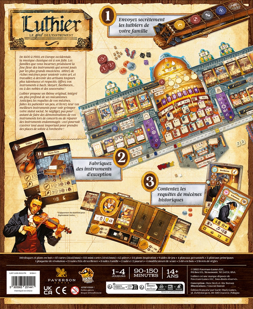 Luthier transporte les joueurs au sommet de la musique classique en Europe occidentale, à une époque où l’art de l’instrument était soutenu à parts égales par des artisans qualifiés, des mécènes nobles, des interprètes virtuoses et des compositeurs célèbres tels que Bach, Mozart et Beethoven.