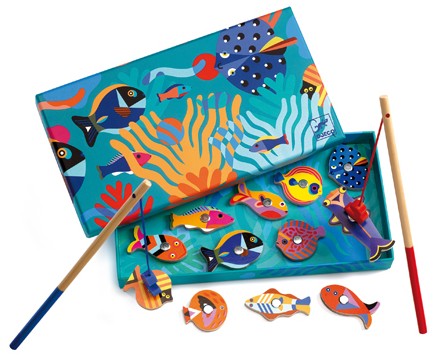 Idéal pour développer la concentration et la dextérité, ce jeu de pêche en bois est livré avec 12 poissons colorés, 2 cannes à pêche aimantées et une boîte pour créer un cadre parfait.