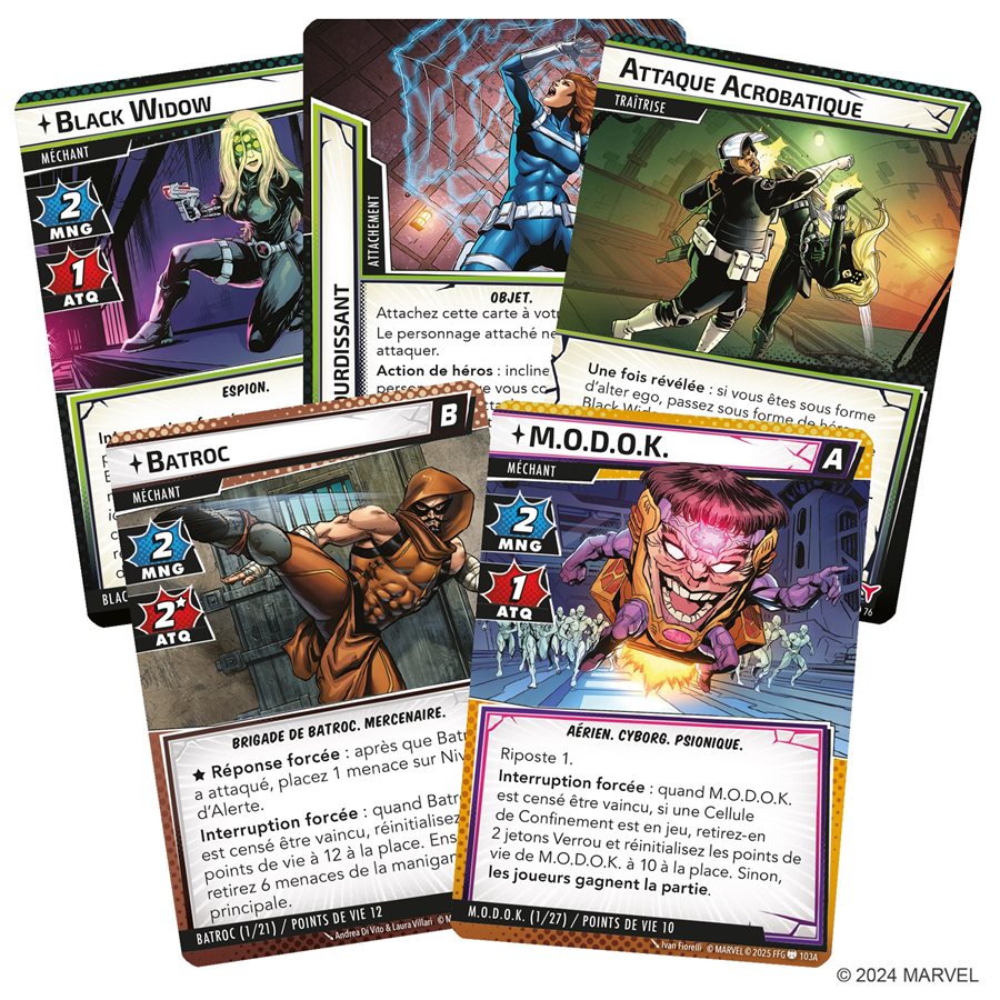 Ces scénarios peuvent être joués seuls, dans n’importe quel ordre, ou à la suite les uns des autres dans le cadre d’une campagne palpitante et pleine d’intrigues, au cours de laquelle les héros doivent rassembler des preuves pour démasquer le traître avant qu’il ne soit trop tard. Faites équipe avec Nick Fury et Maria Hill et sauvez le monde avec les agents du S.H.I.E.L.D. Pouvez-vous vaincre la menace qui vient de l’intérieur ?
