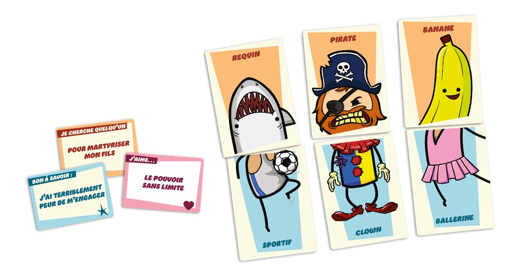 Contenu : 300 cartes Centre d’intérêt, 230 cartes Tête et Corps, 1 règle du jeu.
