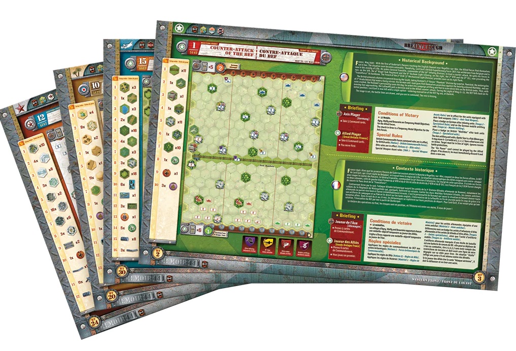 L’extension Plateaux Breakthrough pour Memoir’44 vous fera découvrir de grandes opérations de la Seconde Guerre mondiale sous un nouveau jour. Vous y trouverez deux plateaux grand format double-face, de 13 hex par 17, avec lesquels vous pourrez jouer des batailles à grande échelle sur n’importe quel terrain (campagne, plage, hiver et désert) ! Ces plateaux sont composés de 9 panneaux et ont été imprimés à la plus grande taille que le permettent les technologies d’impression actuelles. Le format Breakthrough s’ouvre ainsi à de nouveaux scénarios !