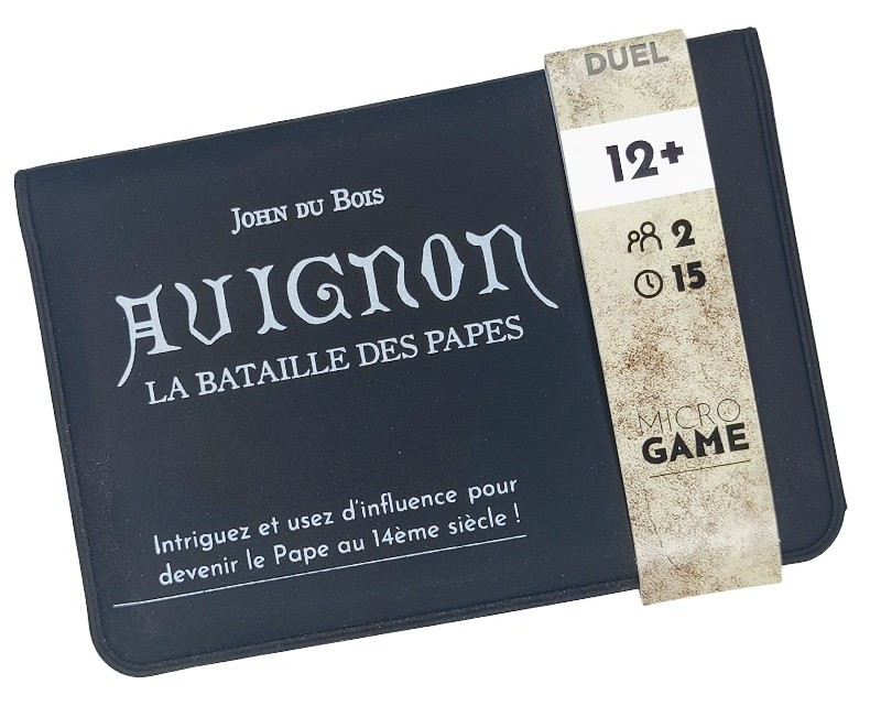 Avignon : A Clash of Popes est un jeu de cartes rapide de manipulation d’influence dans lequel les deux joueurs sont des candidats rivaux au poste de Pape au 14ème siècle. Les joueurs gagnent de l’influence en adressant des pétitions aux membres de l’Église médiévale, tels que les cardinaux, les nobles et les chevaliers, et en utilisant les pouvoirs uniques des personnages pour attirer les cartes de personnages de leur côté de la table (leur congrégation), ou pour forcer un adversaire à pousser des cartes vers eux. Le premier joueur à faire entrer trois personnages dans sa congrégation gagne.