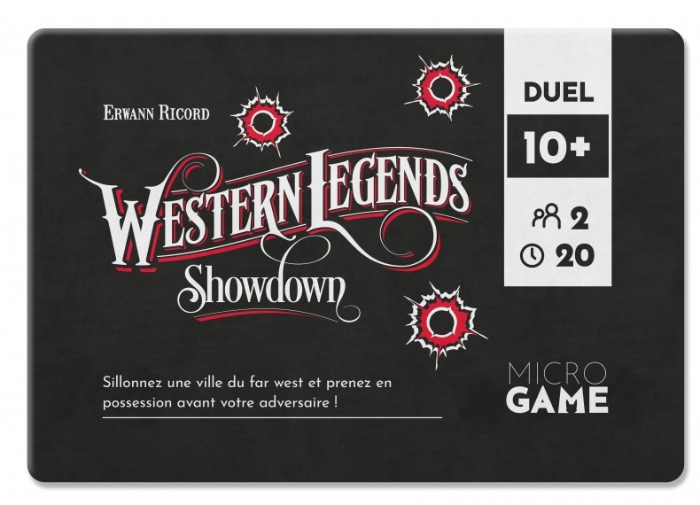 Dans ce nouveau Micro Game en duel Western Legends Showdown, les joueurs se battront pour gagner le plus de cartes possible en respectant les conditions de prises imposées par trois lieux emblématiques du Far West qui seront sélectionnés parmi sept au début de chaque partie.