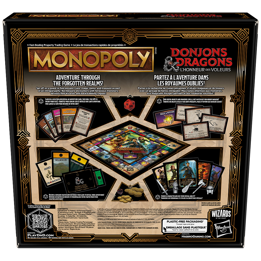 La partie se termine dès que tous les lieux ont été sécurisés. Le joueur avec le plus d’or gagne ! Ce jeu d’aventure D&D est un super cadeau pour les fans de Dungeons & Dragons et du jeu Monopoly.