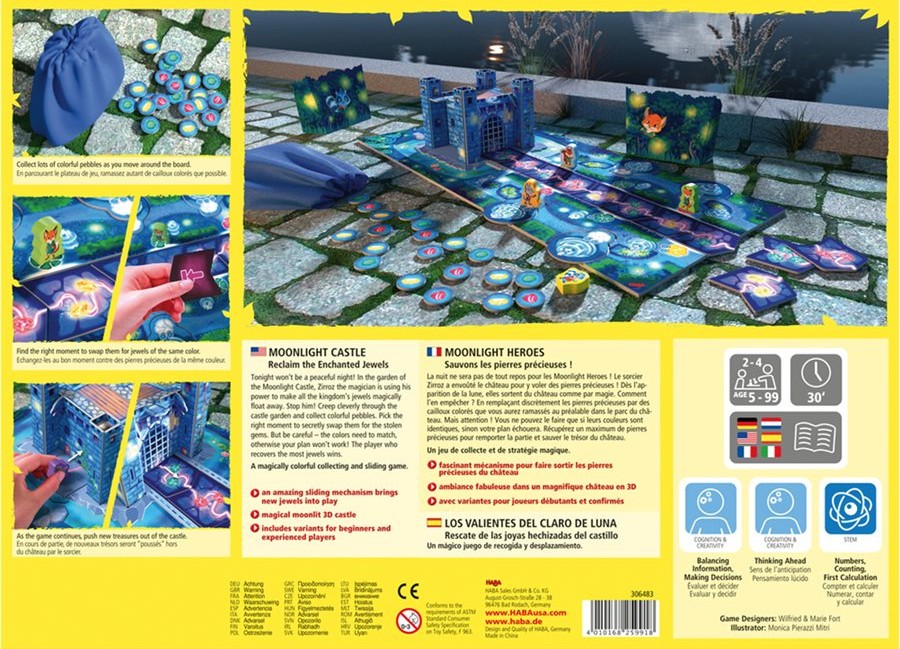 La nuit ne sera pas de tout repos pour les Moonlight Heroes ! Le sorcier Zirroz a envoûté le château pour y voler des pierres précieuses ! Dès l’apparition de la lune, elles sortent du château comme par magie. Comment l’en empêcher ? En remplaçant discrètement les pierres précieuses par des cailloux colorés que les joueurs auront ramassés au préalable dans le parc du château. Mais attention ! Ils ne pourront le faire que si leurs couleurs sont identiques, sinon le plan échouera ! Ils doivent récupérer un maximum de pierres précieuses pour remporter la partie et sauver le trésor du château.