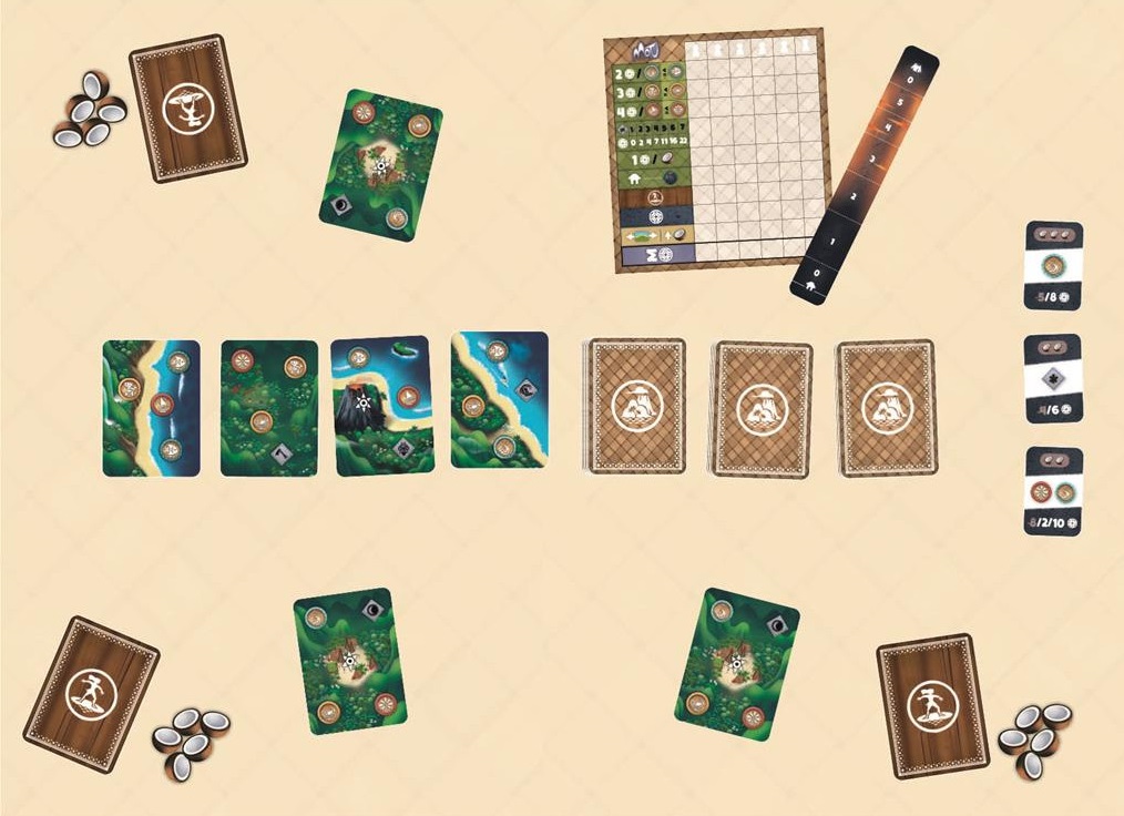 Une partie de Motu se joue en 9 tours. A chaque tour, dans le sens des aiguilles d’une montre, en commençant par le joueur qui a posé les pieds sur une île le plus récemment, les joueurs vont prendre une carte au centre de la table et l’ajouter à leur île en la superposant à une ou plusieurs autres cartes déjà en place.