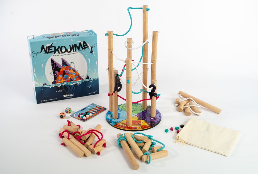 L’installation de poteaux électriques devient plus complexe en raison de l’étroitesse du territoire et de sa curieuse population de chats déambulant sur les câbles. Nekojima est un jeu d’adresse et de dextérité en bois dans lequel vous devrez maintenir en équilibre toute une installation.