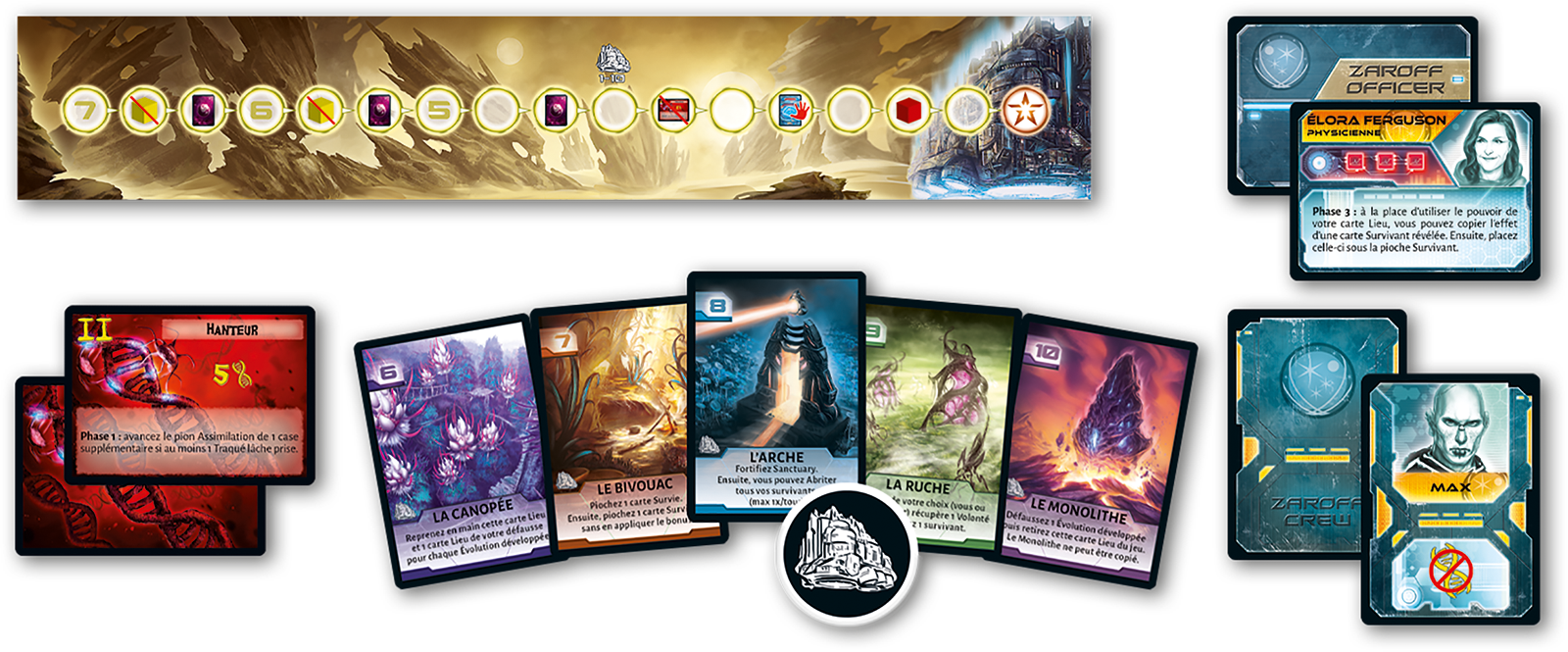 SANCTUARY introduit des nouveaux éléments tels que les cartes Évolution et les cartes Avatar qui personnalisent la Créature et les Traqués, ainsi que le plateau Sanctuary qui propose aux Traqués une condition de victoire alternative.