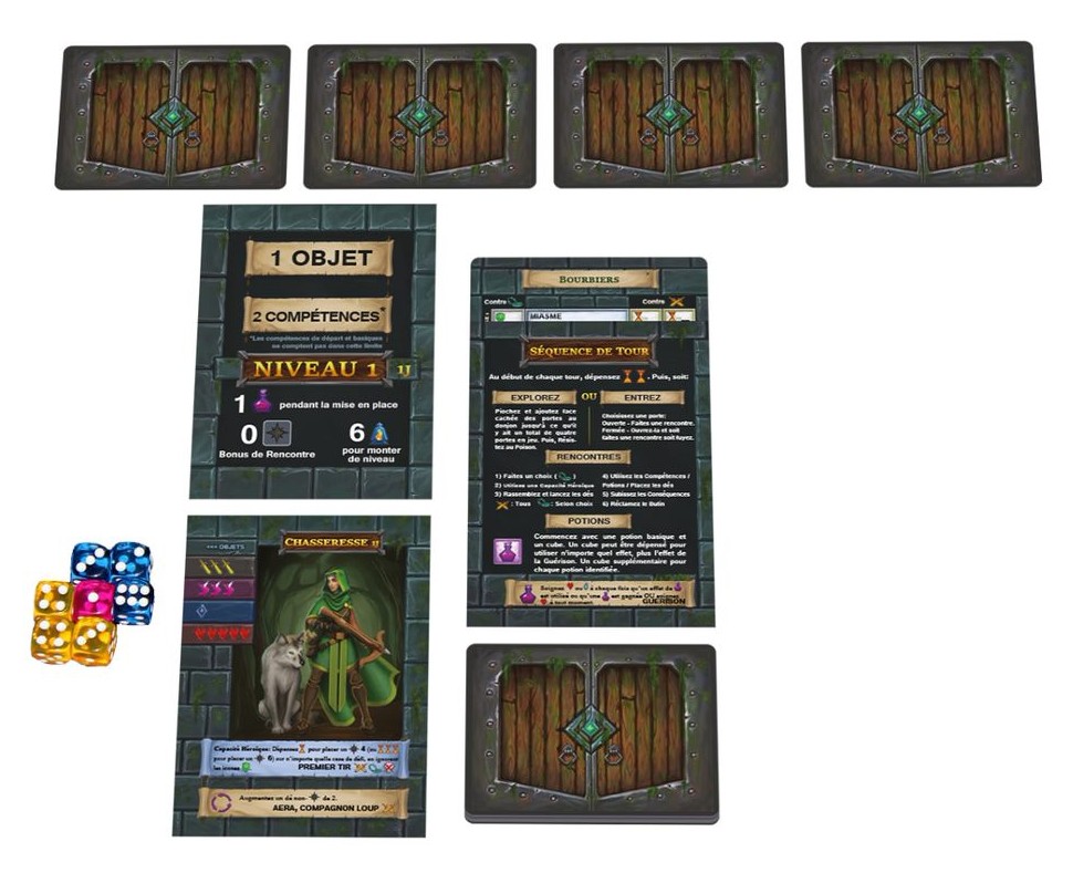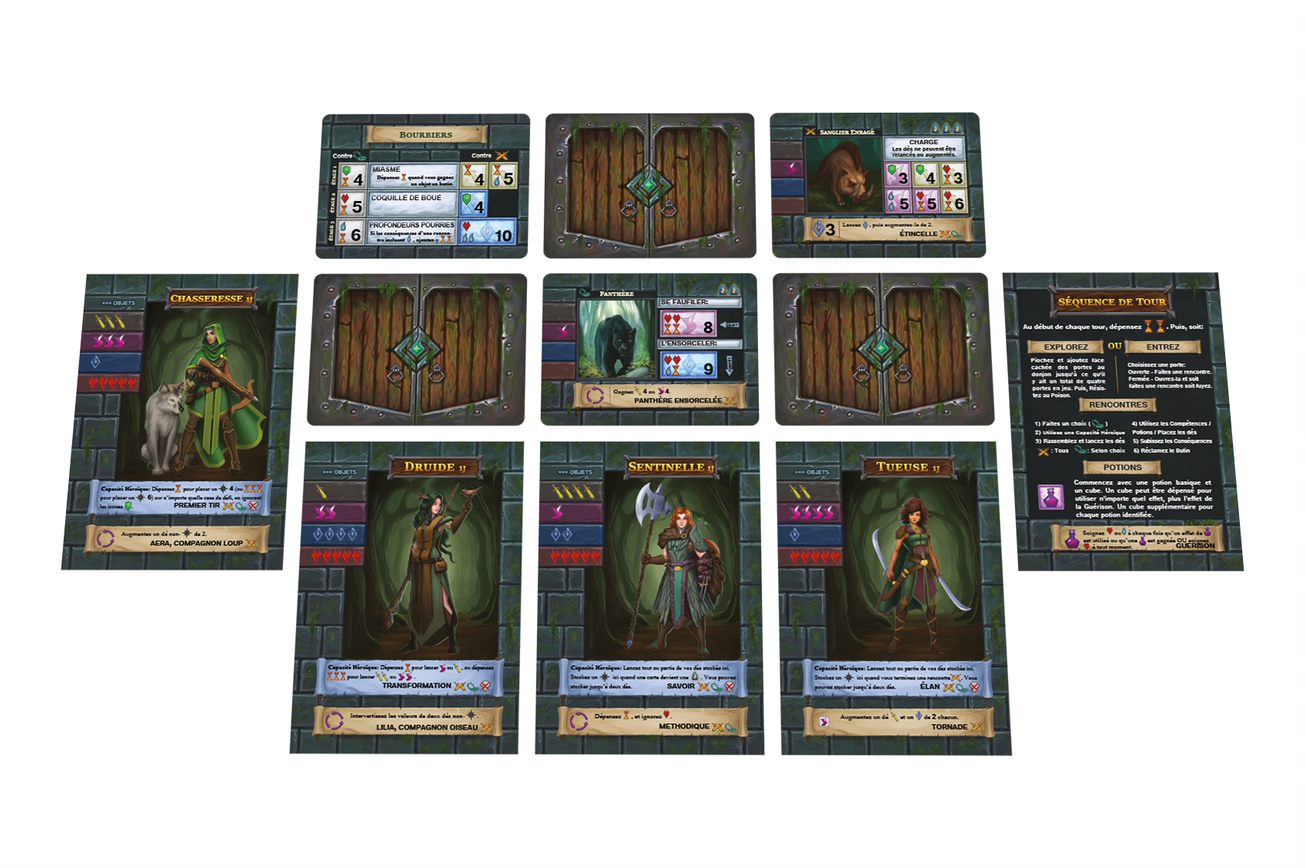 Forêt des Ombres ajoute de nouveaux héros, donjons, ennemis, pièges et rend vos aventures plus dangereuses avec un nouveau type de blessure : le poison. Le gardien à la fin du donjon ne sera pas tendre avec vous si vous tardez… La fouille du donjon sera différente à chaque fois avec votre personnage à équiper afin de survivre. Le paquet de cartes consiste en ennemis et rencontres variés à affronter. Chaque carte décrit à la fois l’obstacle à vaincre et les récompenses reçues une fois celui-ci vaincu. Vous pourrez l’utiliser soit en expérience, en objet, en compétence et la placer en conséquence près de votre personnage. Le plus longtemps vous restez dans le donjon, le plus profond vous vous enfoncez et plus la difficulté augmente. Tout en bas, vous rencontrerez le gardien. Survivez et vous serez une légende !