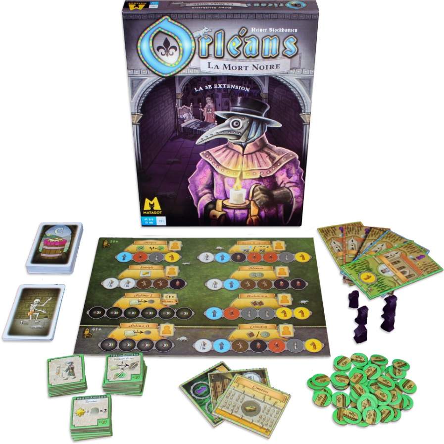 Lorsque vous utilisez l’extension Orléans: La Mort Noire, les conditions de jeu sont rendues plus difficiles dès le début de la partie grâce aux « cartes rats ». Il arrive qu’il y ait moins de moines dans le jeu, qu’aucun engin ne puisse être placé sur les cartes de lieu ou que la construction de stations commerciales doive être payée avec une pièce supplémentaire.